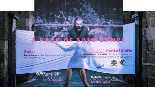 Танцовият спектакъл „Лов на вълци“ вече направи своята премиера пред софийска публика на 16 март в рамките на фестивала Dance Frame Fest. Срещата с публиката в София очерта основното му поле на въздействие - тялото. Днес спектакълът продължава своя път с премиера в Мадрид, в пространството Escalera de Jacob от 18:00 часа. В центъра е тялото на Михаил Бонев. А ... Continue Reading →