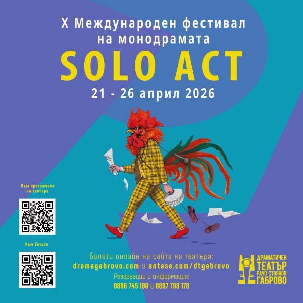 От 21 до 26 април 2026 г. в Габрово предстои десетото мащабно издание на Международния фестивал на монодрамата „Соло Акт“. Фестивалът, организиран от Драматичен театър „Рачо Стоянов“, се провежда на всеки две години, като от 2024 г. има и регионален характер. Българските актьори, чиито моноспектакли са част от богатата фестивална програма, са: Ангелина Славова, Леонид... Continue Reading →