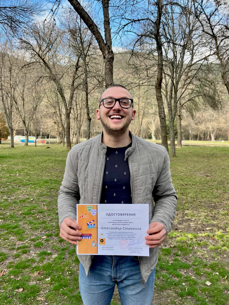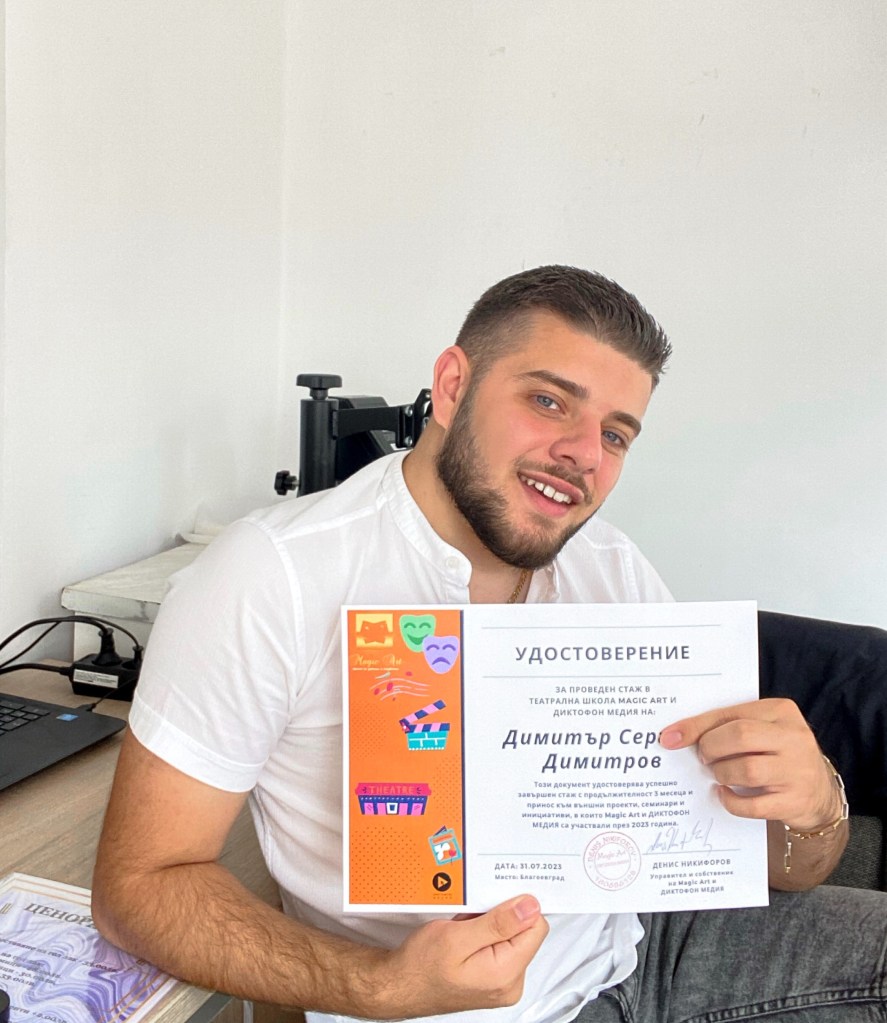 Александър Стаменов успешно завърши тримесечен стаж на Александър С. към Magic Art и Диктофон Медия!