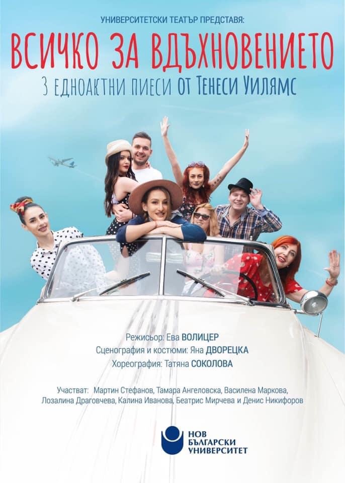 Проф. д-р Ева Волицер споделя мисли за Тенеси Уилямс и за спектакъла „Всичко за вдъхновението“, както и за работата си със студентите – актьори. Във видеото са включени кратки монолози от представлението, които са изпълнени от студентите от майнър програма „Театър- актьорско изкуство“.
