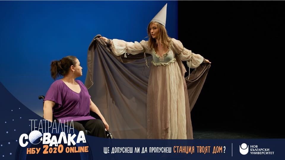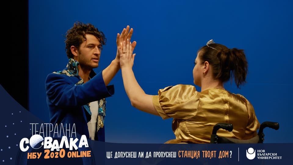 В cпeктaкълa на УТ на НБУ учacтвaт кaктo aртиcти c ограничени физически възможности, тaкa и вече дипломирани aктьoри oт дeпaртaмeнт „Тeaтър“ нa НБУ.