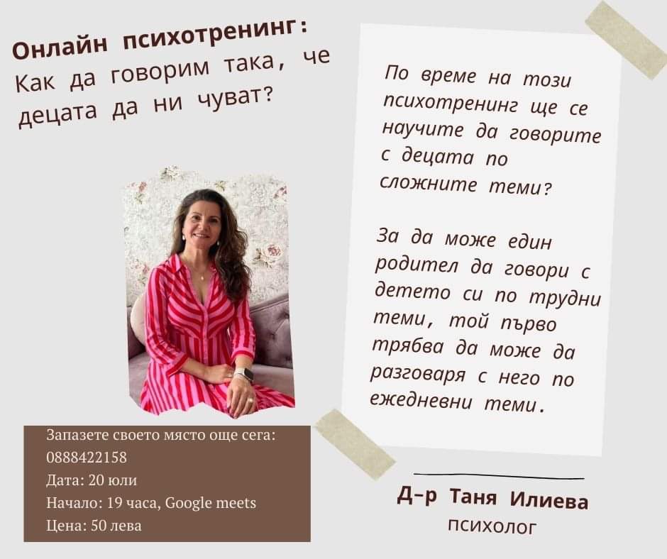 В този онлайн уъркшоп ще бъдат разгледани най-ефективните начини за общуване с децата, как да ги подкрепим по пътя на целите им и как да ги насърчим да развиват своите позитивни навици?