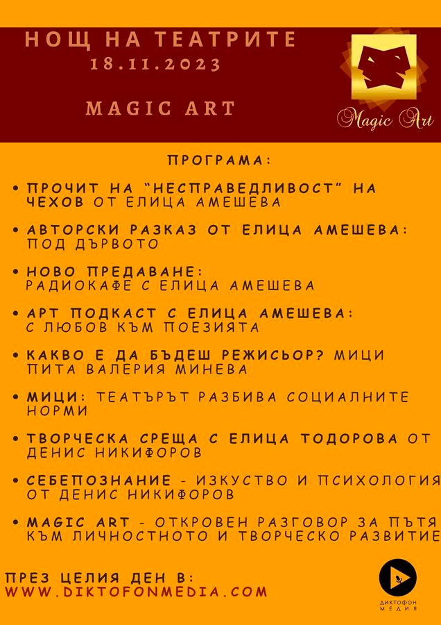 Всички онлайн инициативи на Magic Art ще бъдат качени в www.diktofonmedia.com и във Фейсбук.