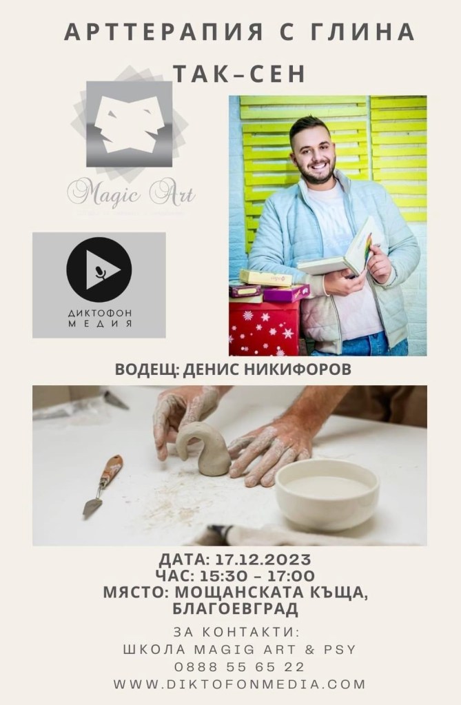 Предстои провеждане на практически семинар: Арттерапия с глина по метода ТАК-СЕН по време на Коледни Работилници в Мощанската къща в Благоевград.