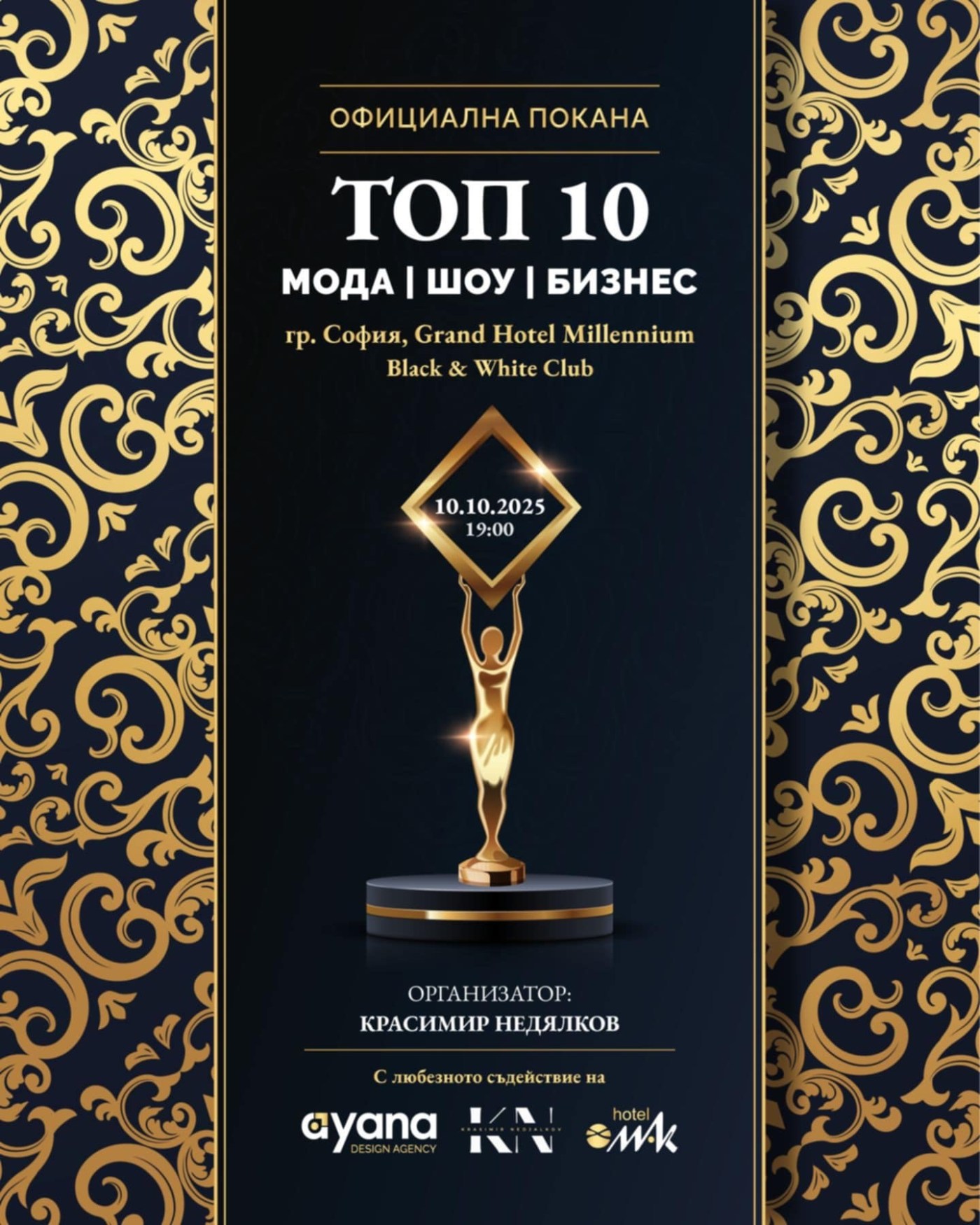 На 10 октомври 2025 г. от 19:00 ч. в изискания клуб Black & White на хотел “Милениум” ще се състои едно от най-очакваните събития на годината – Годишните награди за мода, шоу и бизнес – София 2025.
