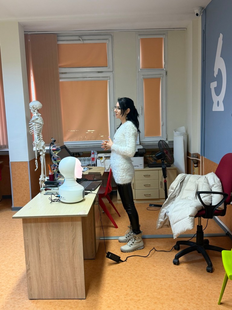 Специални гости на гимназията бяха проф. дпн Майяна Митевска, доц. Паулина Цветкова и докторант Денис Никифоров. В центъра на събитието беше представянето на социално-асистивен робот, проектиран да подпомага учебния процес и психичното здраве.