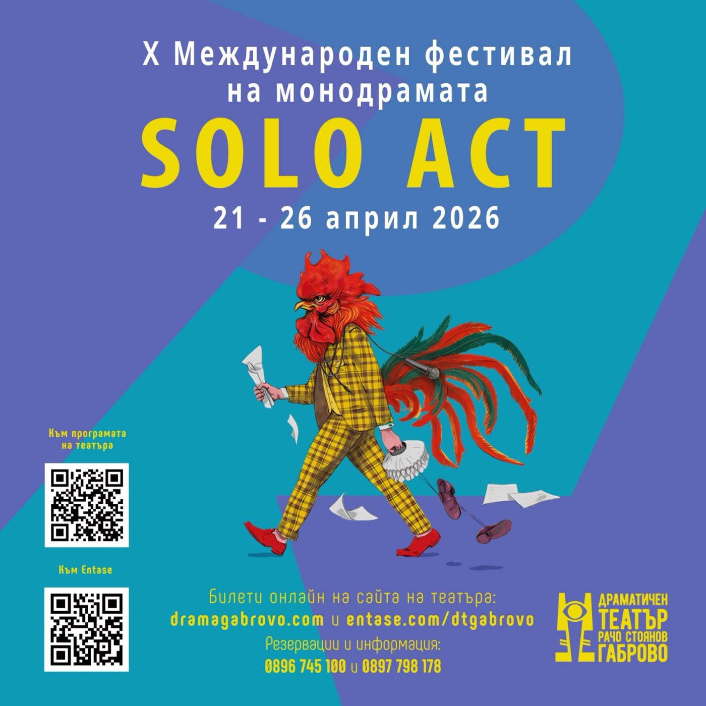 От 21 до 26 април 2026 г. в Габрово предстои десетото мащабно издание на Международния фестивал на монодрамата „Соло Акт“. Фестивалът, организиран от Драматичен театър „Рачо Стоянов“, се провежда на всеки две години, като от 2024 г. има и регионален характер.