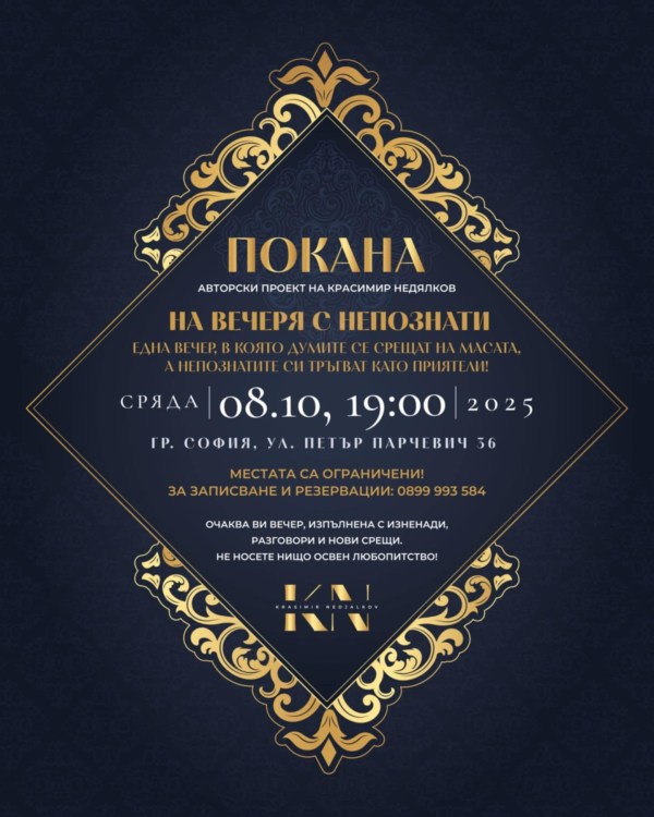 „На вечеря с непознати“ – социалният експеримент, който ще промени начина, по който срещаме хораВ свят, в който „свързани“ често значи просто приятелство във Facebook, а разговорите се случват през екрани, един артист решава да върне магията на истинската среща. На живо. С храна. С емоции. С изненада. На 8 октомври в София, в уютно... Continue Reading →